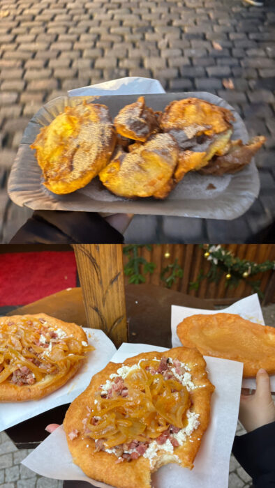 Apfelküchle(アップフェルキューヒレ,輪切りのリンゴを生地にくぐらせて揚げたもの)とシュトゥットガルトで食べたLangos(ランゴシュ)と呼ばれる揚げパンのようなものです。機会があったらぜひ試してみてください!