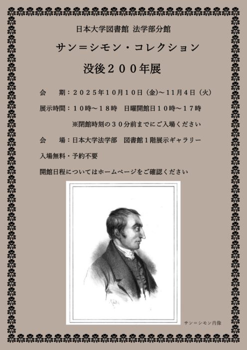 当館が所蔵しているサン=シモン・コレクションのうち彼の著作や自筆書簡類を中心に展示いたします。