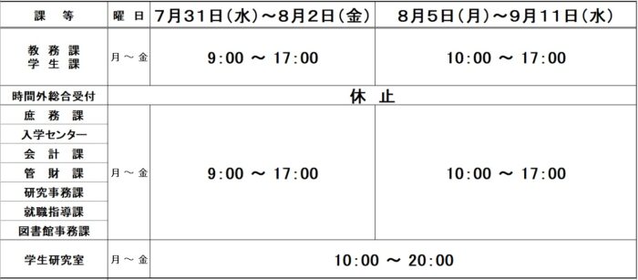 法務研究科の事務取扱については,「令和6年度夏季休暇期間中の事務取扱等について」,