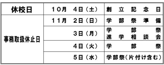 INFORMATION TOP NEWS INFORMATION 創立記念日(10月4日)及び学部祭(法桜祭)期間中の事務取扱について 2025年9月25日 INFORMATION 創立記念日(10月4日)及び学部祭(法桜祭)期間中の事務取扱について 学部諸行事等に伴い,以下の期日について,学部及び大学院(法学・新聞学)の事務取扱を休止いたします。 なお,図書館については,法学部ホームページの図書館開館日程を御確認ください。 前の記事 令和7年度ホームカミングデー【11/3(月・祝)】開催について 次の記事 令和7年度定期無料法律相談会(11月8日(土))実施のお知らせ