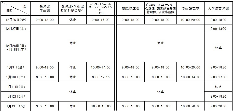※ 大学院法務研究科の補講時間割により,事務取扱時間が変更する場合があります。