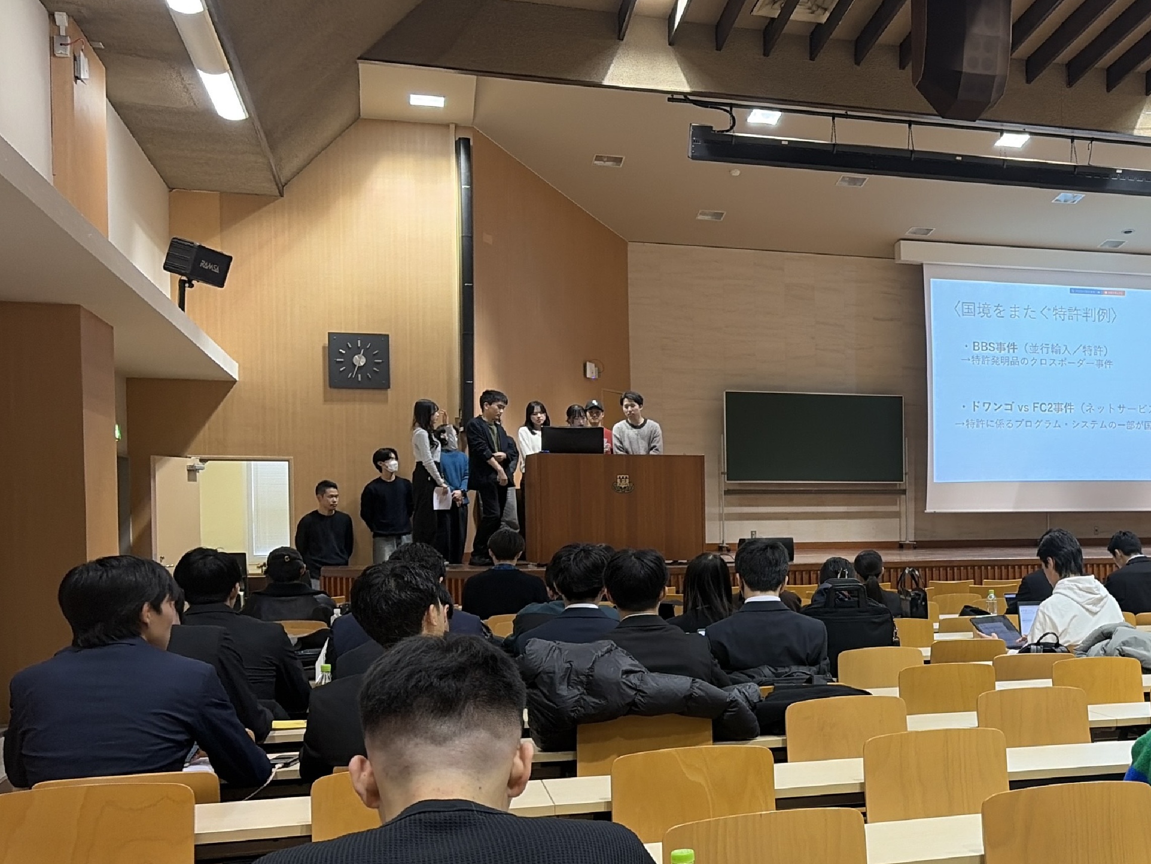12 月 6 日(土)に大講堂で,第 5 回経営法学科合同ゼミが開催され,経営法学科に所属する7つのゼミナールが合同で研究発表を行いました。