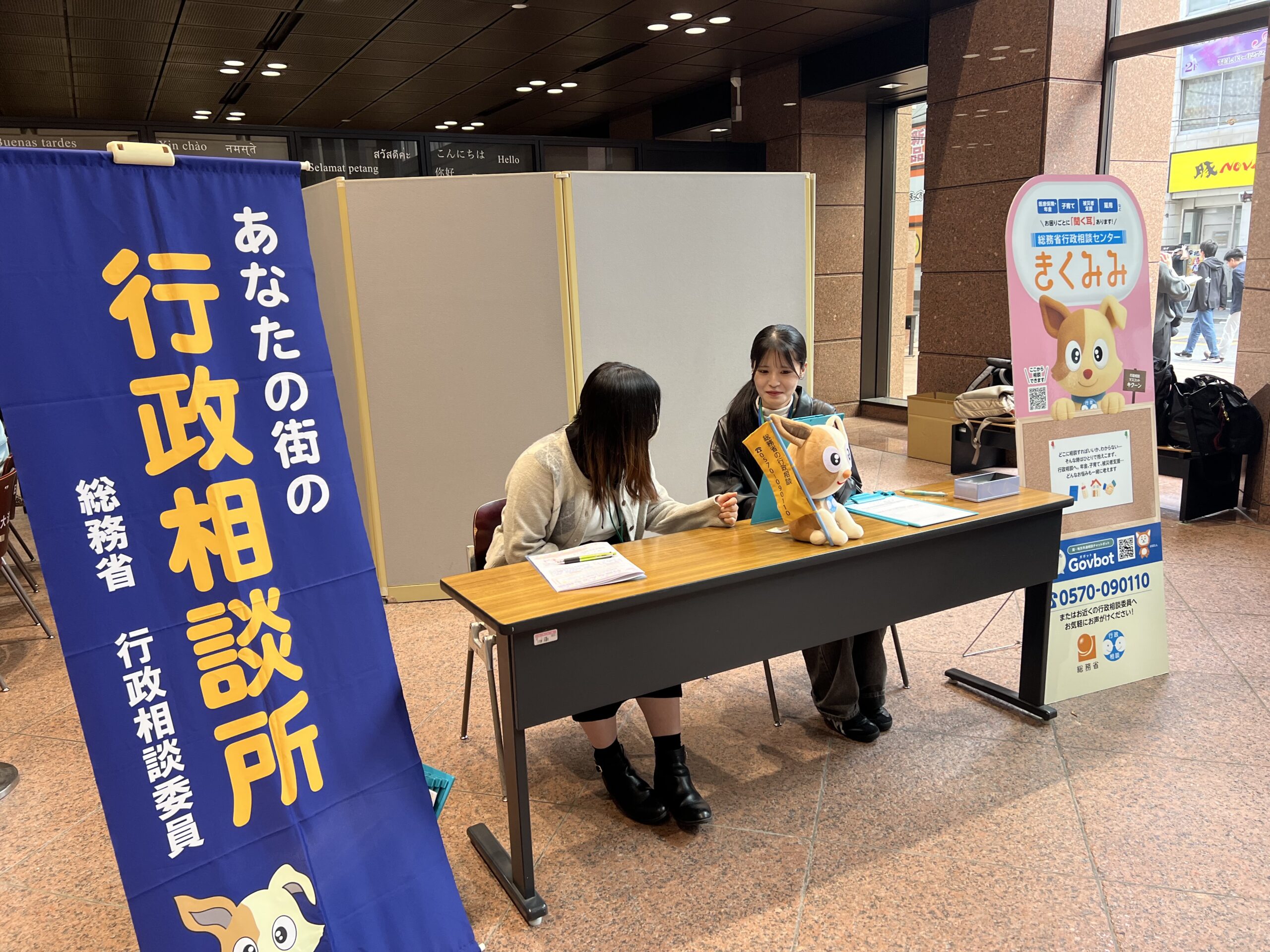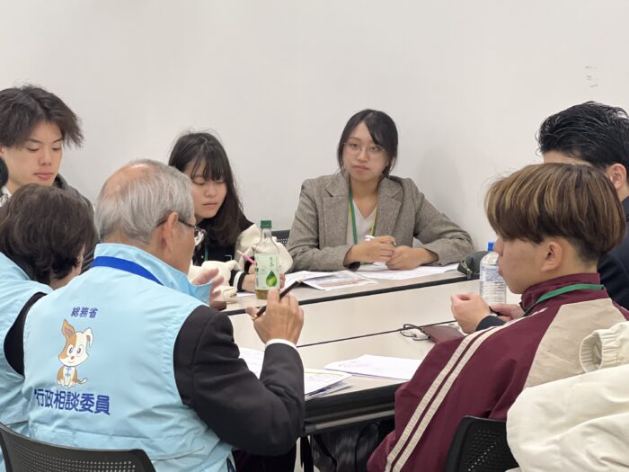 PICKUP NEWS TOP PICKUP NEWS 行政なんでも相談を実施しました。 2025年11月18日 行政なんでも相談を実施しました。 行政なんでも相談を11月3日(月・祝),4日(火)に実施いたしました。行政相談とは,行政などへの意見や要望を受け付け,その実現や解決に努めようとする仕組みであり,様々なトラブル(国立大学の授業料の振込できる金融機関の増加など)を改善しています。 当日は,総務省の行政相談委員22名,学生(行政科研究室生含む)47名が参加し,実際の相談や模擬相談を通じて,行政相談についての理解を深めました。 前の記事 小田司法学部長がドイツのヨハネス・グーテンベルク大学(マインツ)で特別講義を行いました。